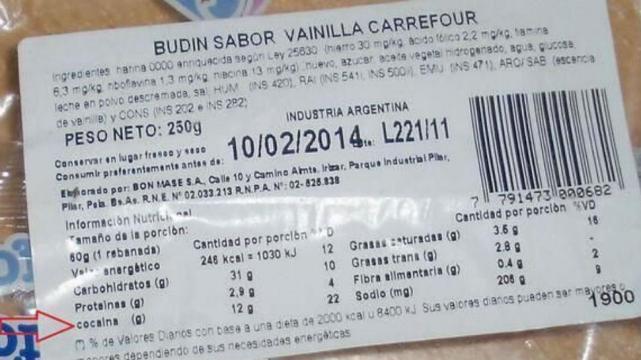 Budines (bizcochos) que vendía el supermercado Carrefour indicaban en su etiqueta que contenían “12 gramos de cocaína”, lo que causó polémica y furor en los medios y las redes sociales de la Argentina.